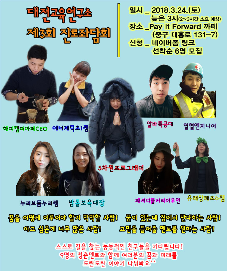 대전교육연구소 제3차 진로좌담회 신청이 시작되었습니다.