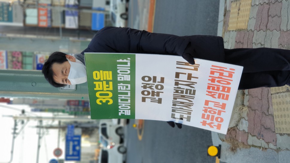 □ 도마·변동지구 초등학교 설립을 위한 1인 시위에 나선 성광진 소장은 “경제적인 논리를 앞세워 아이들에게 원거리 통학의 불편함과 안전문제를 안겨주는 것은 교육복지의 원칙에 어긋나는 편의적인 발상”이라고 비판하면서,